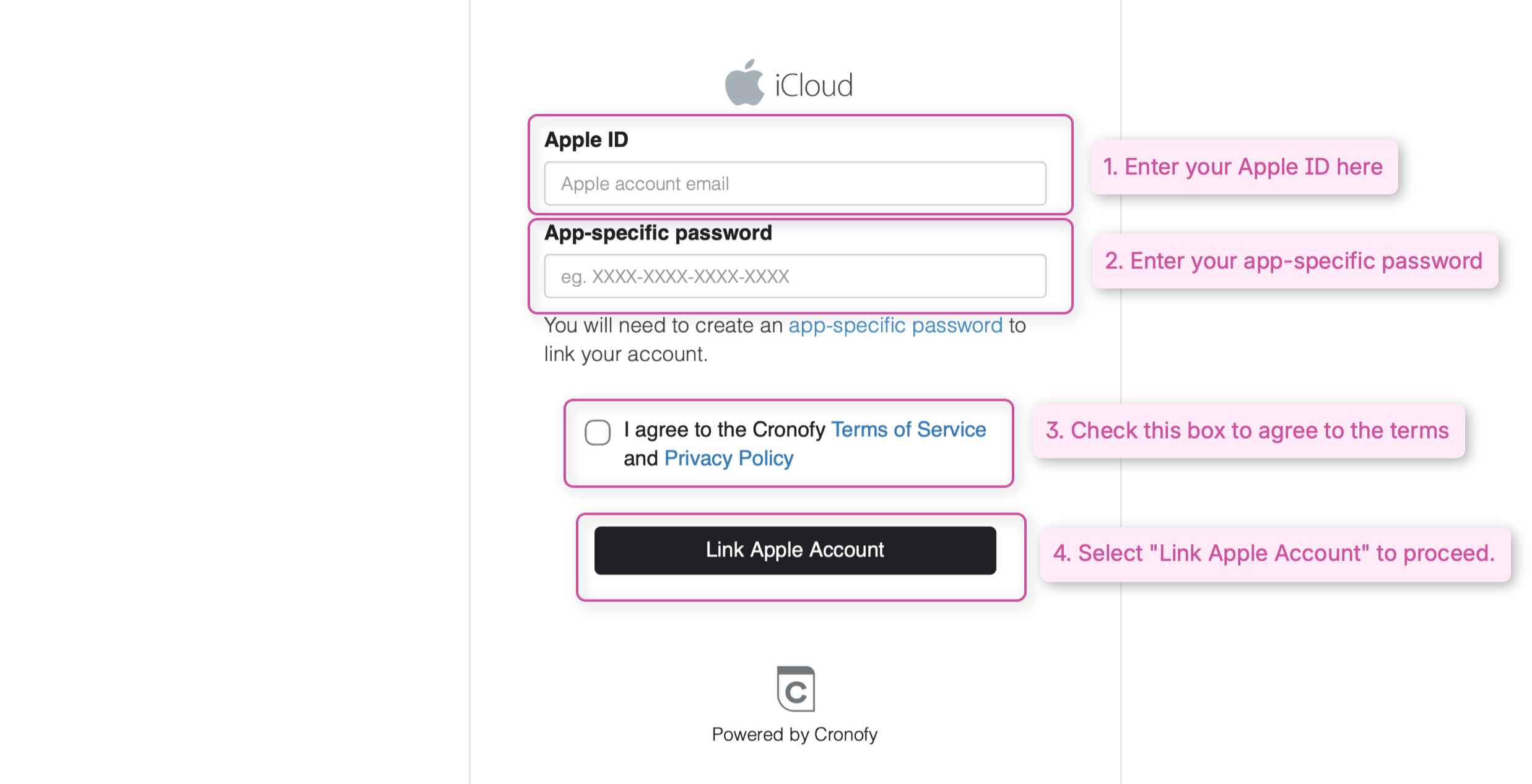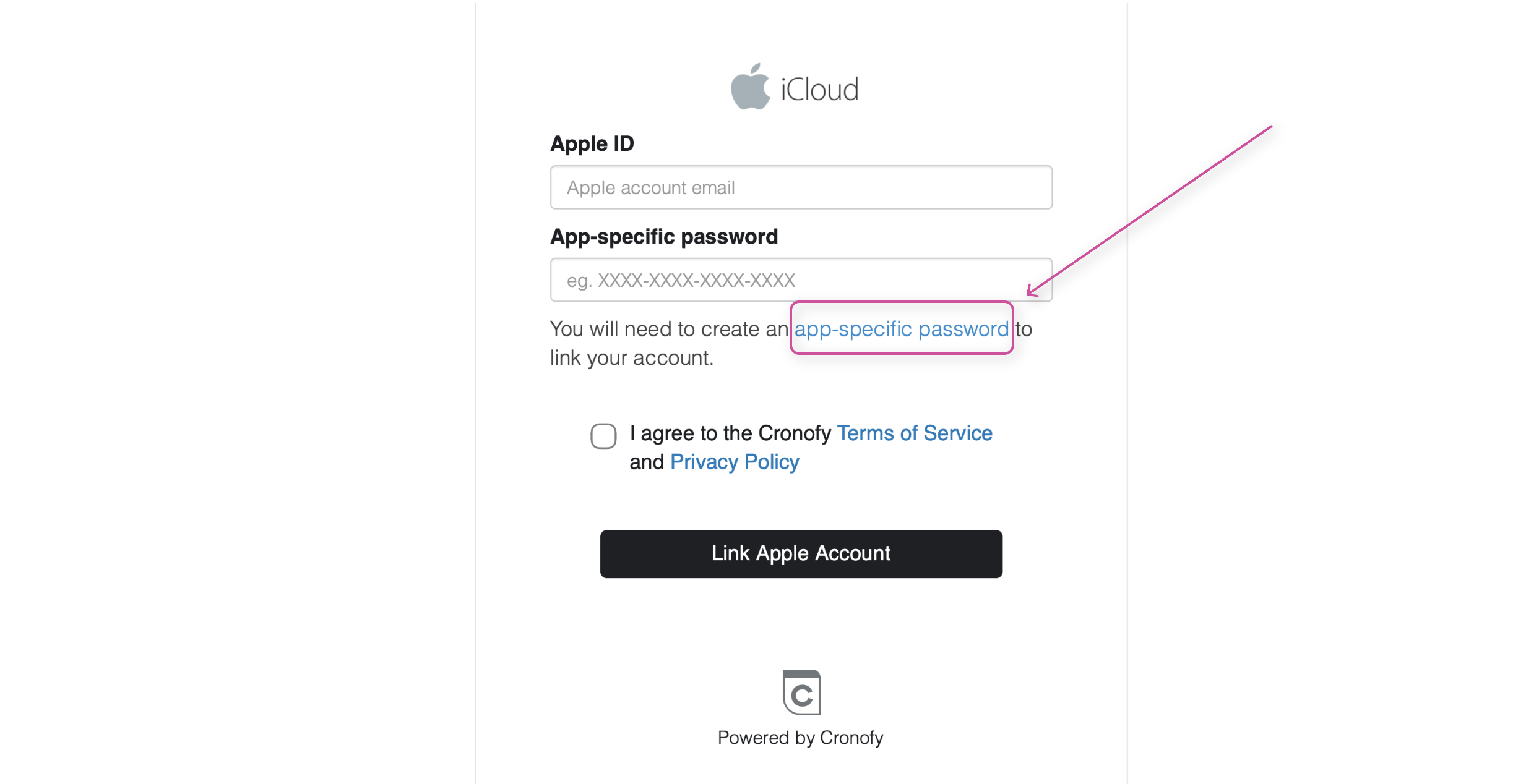 5. Once you've generated your app-specific password, go back and enter it on the page.