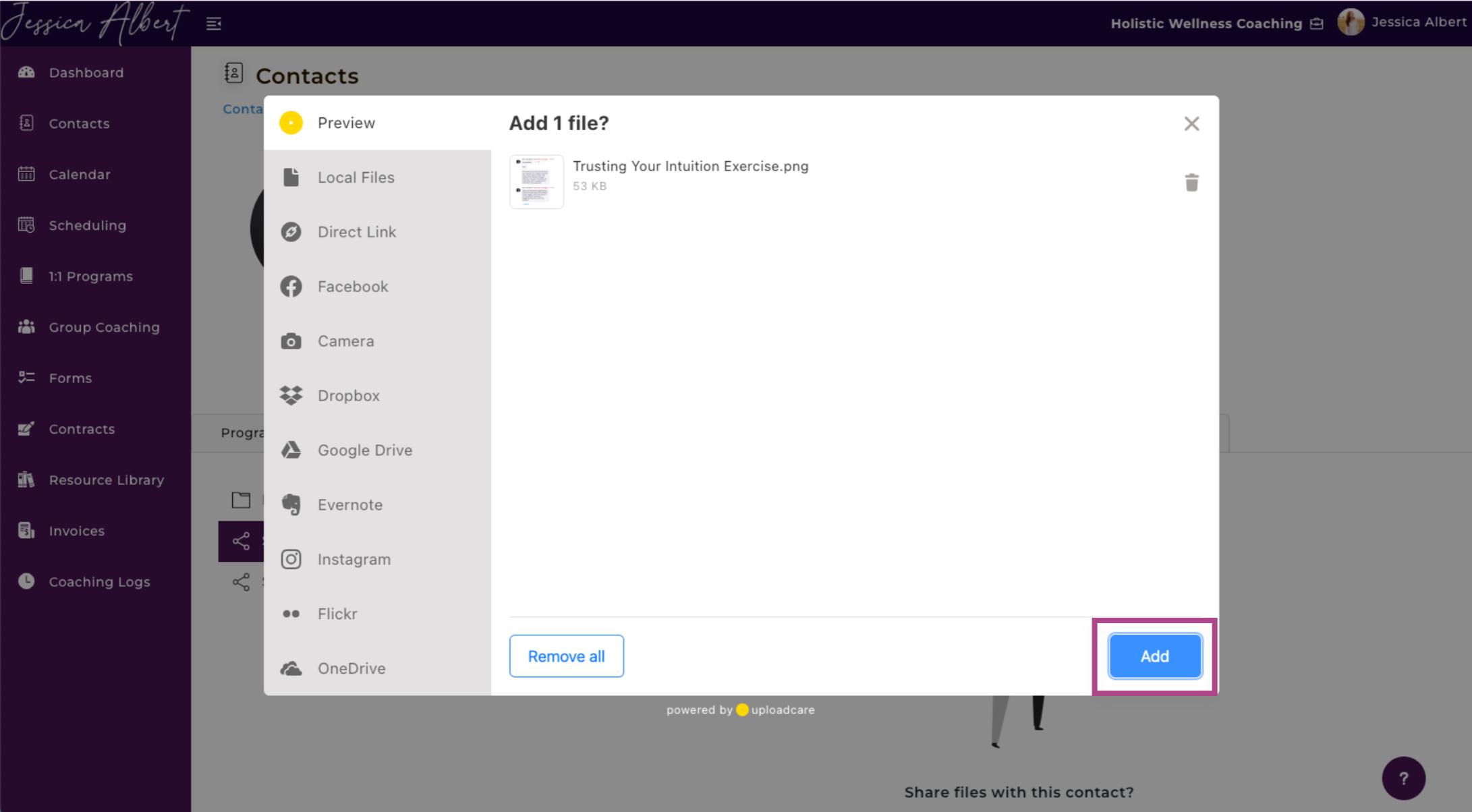 Note: If you want to share files (or resources) with a contact as part of a coaching program that they are enrolled in, you should do so from the Program Management Page.