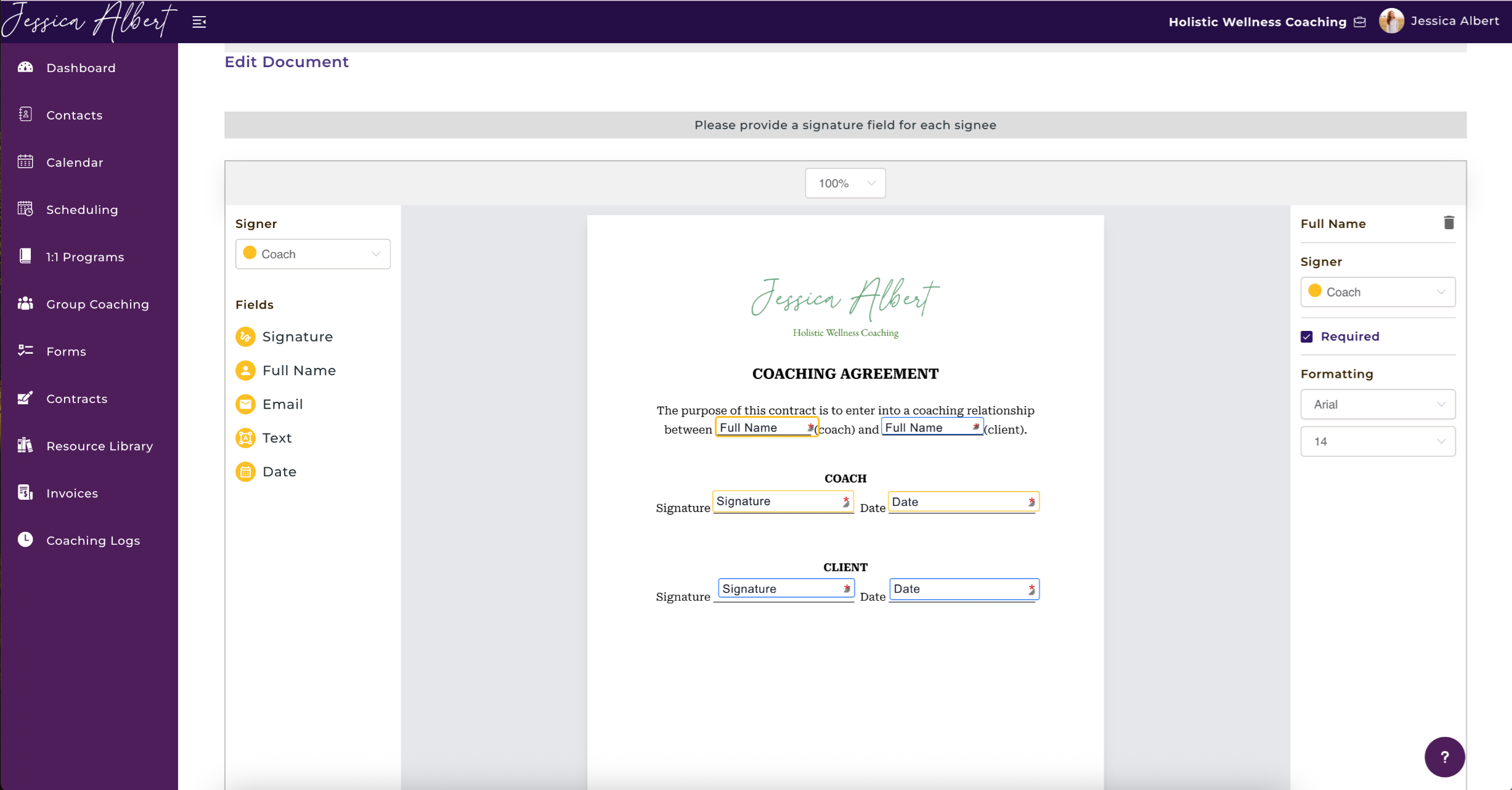 Tip: The document title should be descriptive so that your clients will understand what it's about. For example, 'Coaching Agreement for John Smith'.