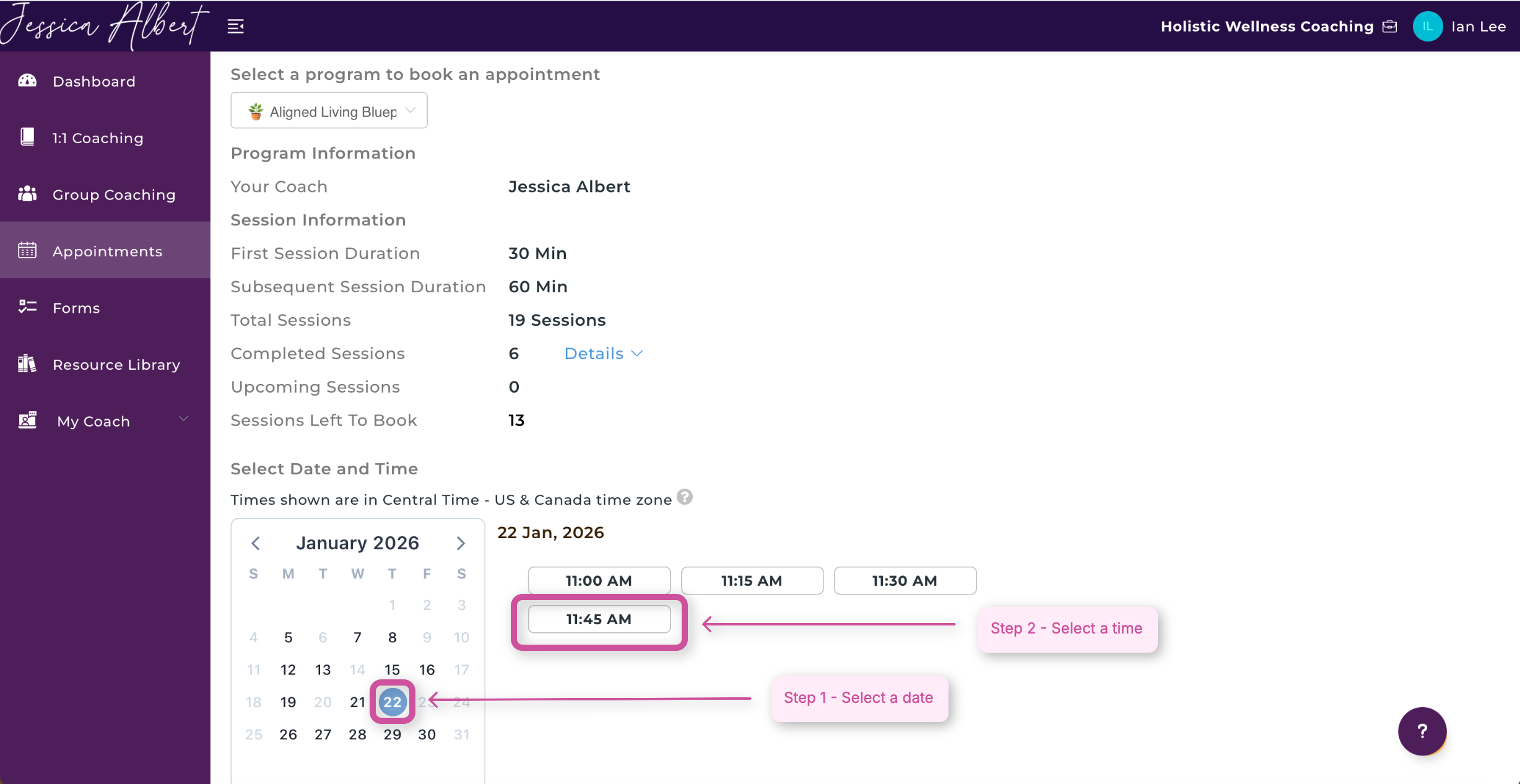 Follow the steps below to schedule a session with your coach.