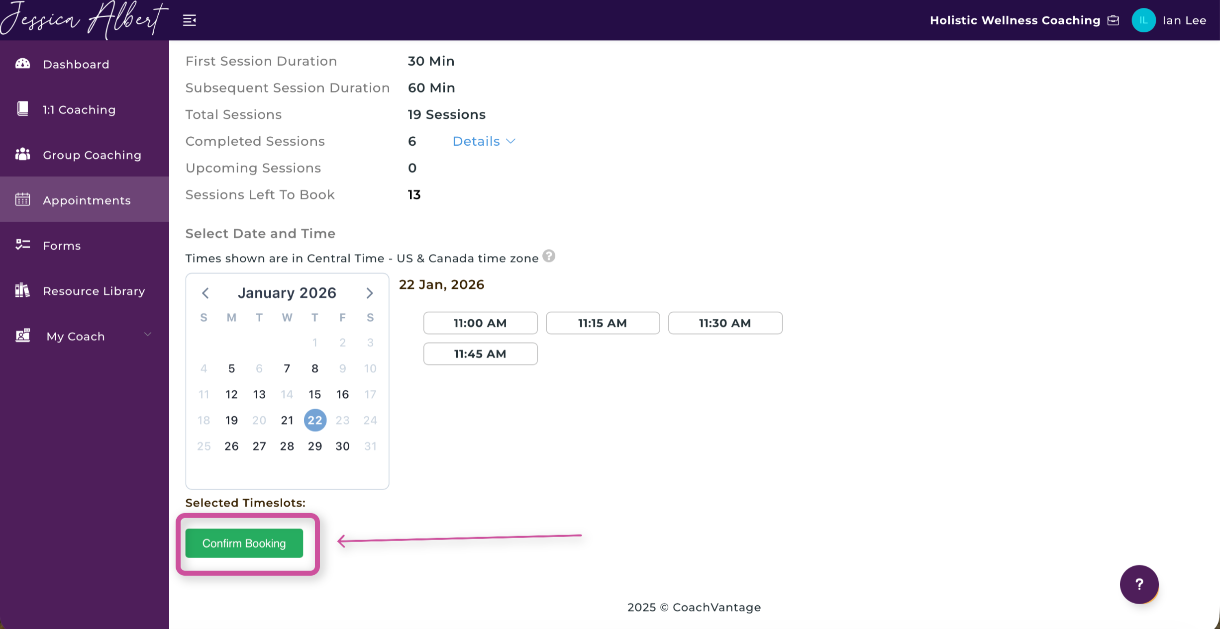 The Client Portal in CoachVantage is your one-stop hub to book appointments with your coach, review forms, view assignments, and more.